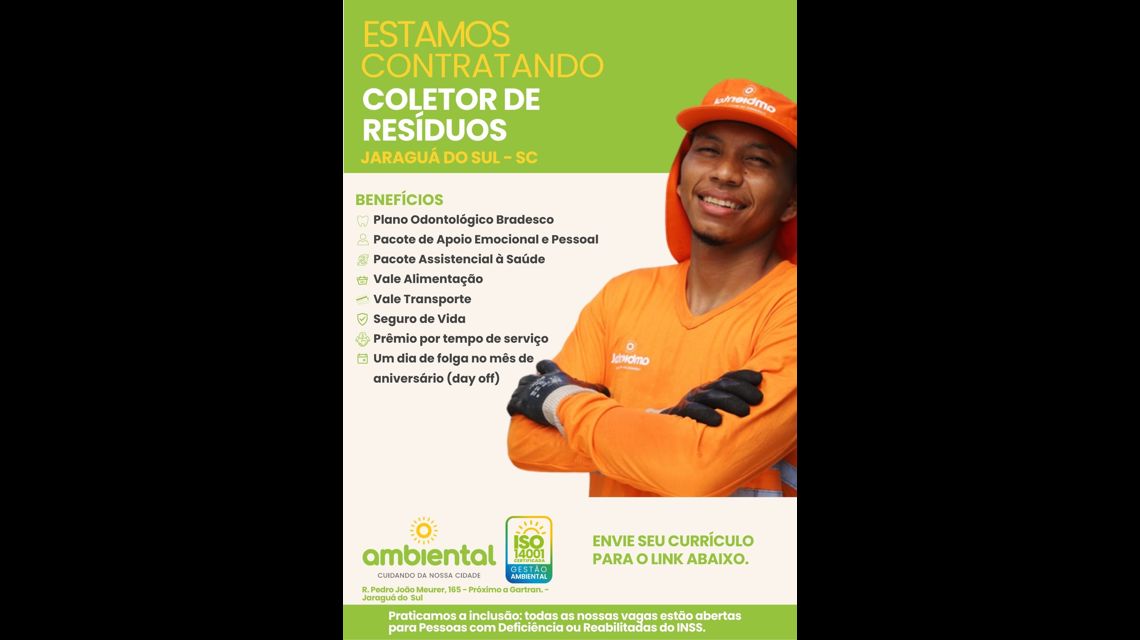 Quer trabalhar na maior empresa de limpeza urbana de Santa Catarina e ainda contribuir para a preservação do meio ambiente em um ambiente inclusivo e acolhedor?